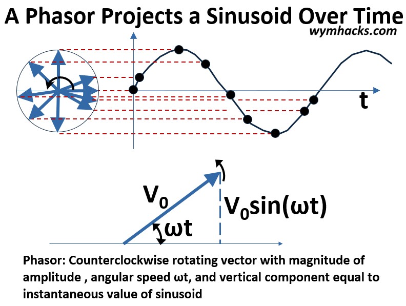 Phasors are vectors (having magnitude and direction) that allow us to represent sinusoidal voltages and currents as simple rotating vectors.