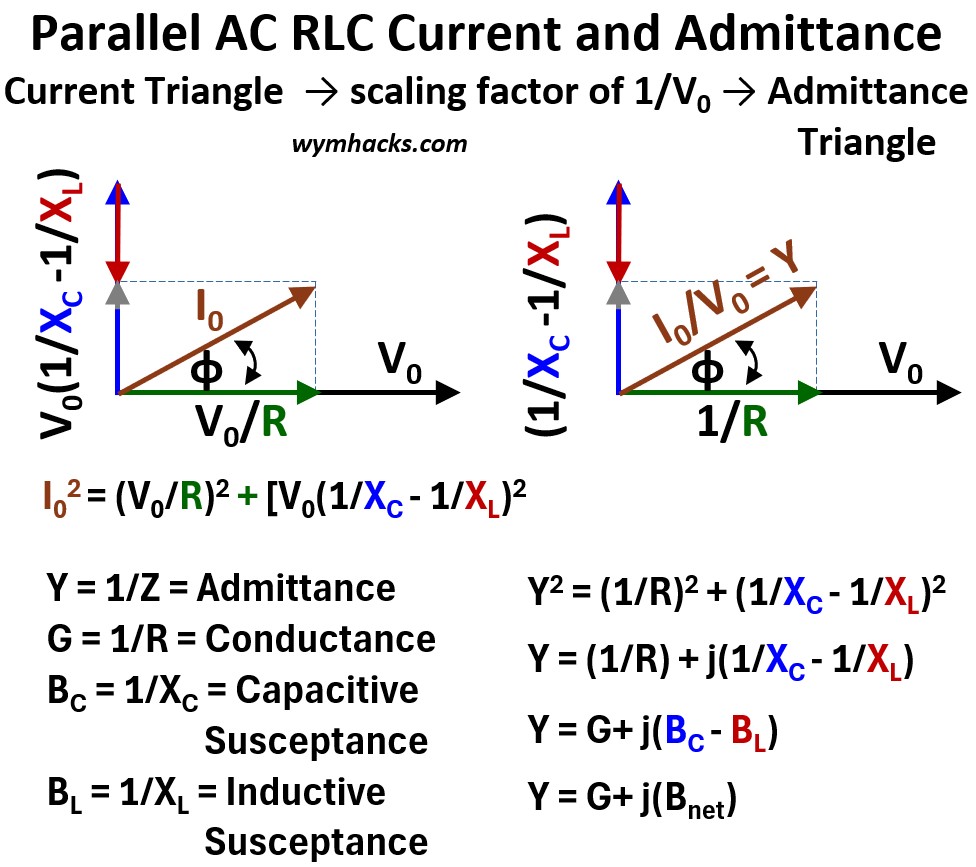It demonstrates the Pythagorean relationship between these circuit elements: Y2 = (1/R)2+ Bnet2