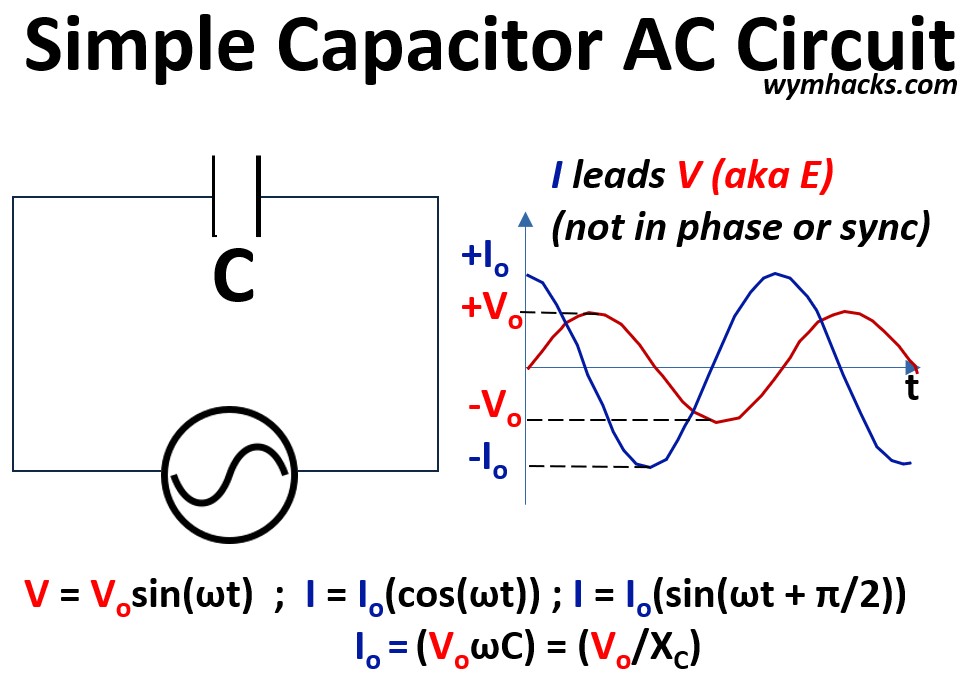 - IC is 90 degrees ahead of V0 (i,e +90 degrees)