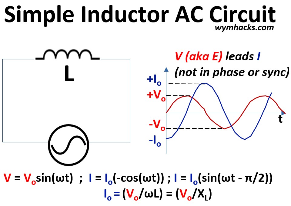 In an AC circuit, the current is constantly changing, so the inductor generates a back electromotive force (EMF) that opposes the source voltage.