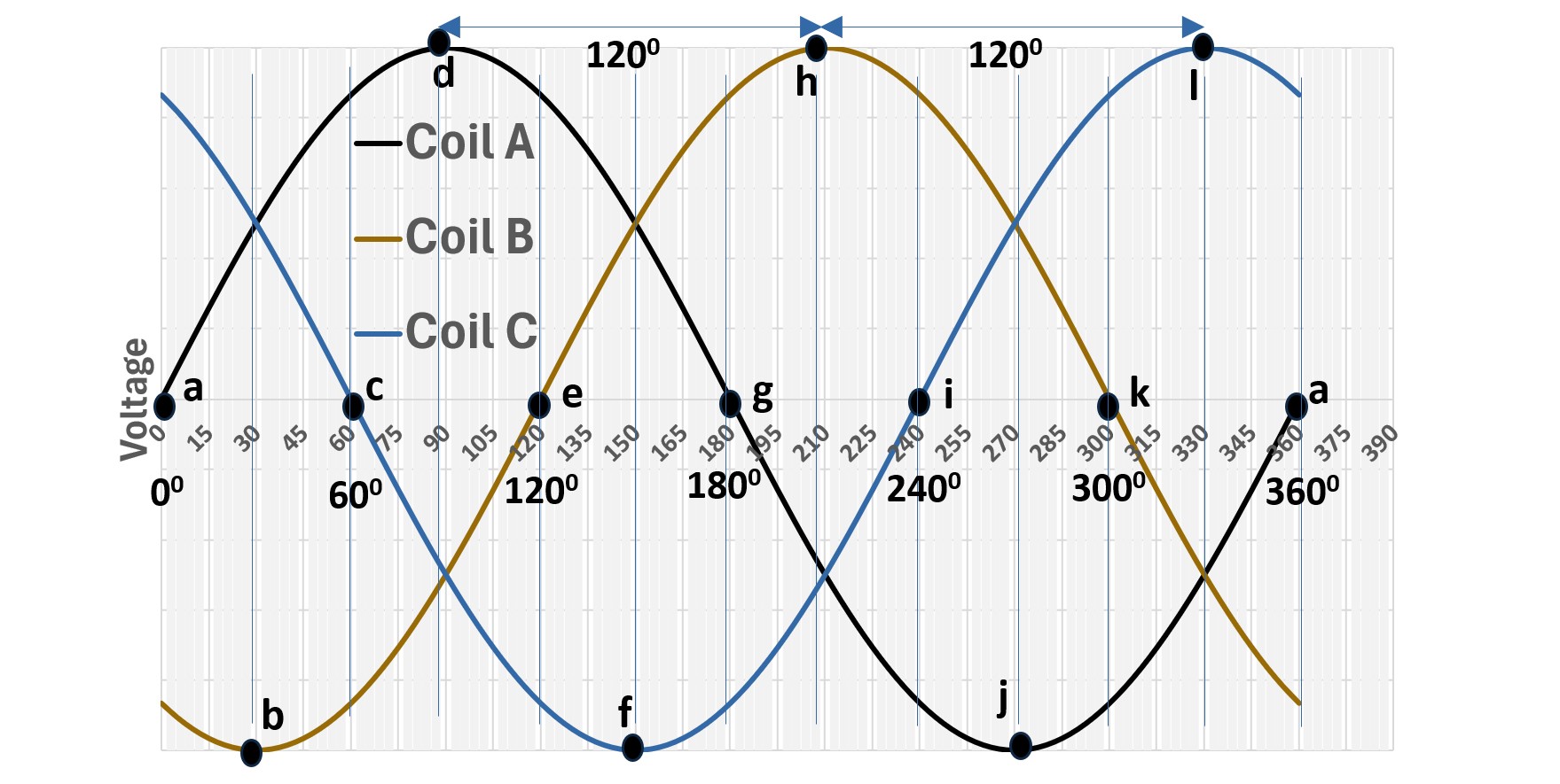 By staggering three sets of coils, we create a more consistent, high-capacity flow of energy that powers our modern world.
