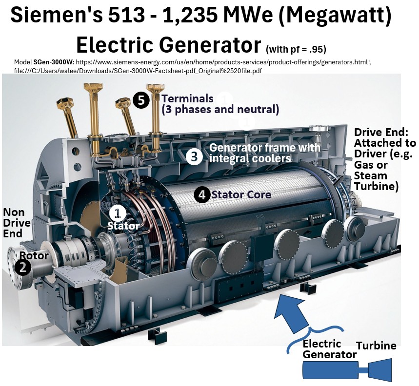 • It’s designed to generate power often exceeding 1,000 MW (1 GW) when coupled with large steam or gas turbines.