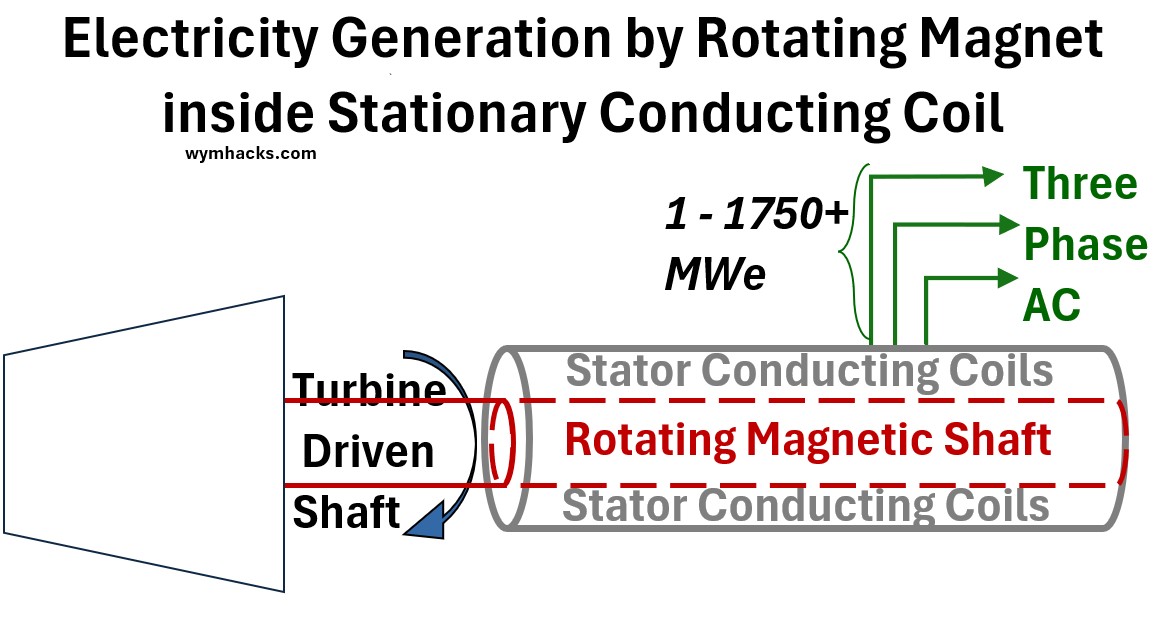 • In large industrial units, this whole unit (shaft plus magnetic coils) is a rotating electromagnet.