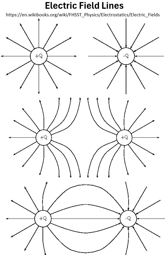 Attracting (opposite signs) and Repelling (same signs) field shapes are shown below.