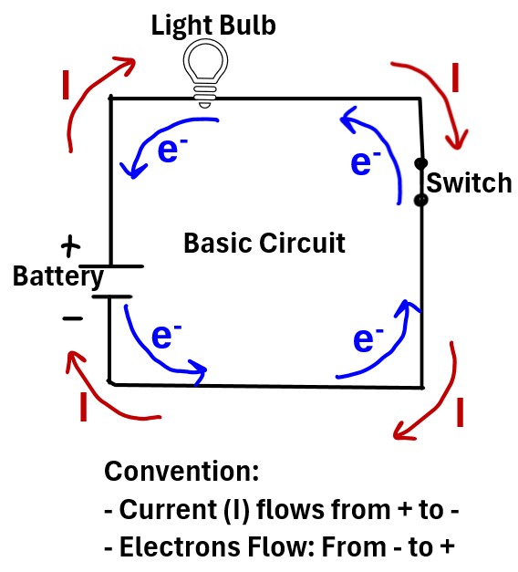 Picture: Conventional Current Flow (Current I is opposite of direction of electrons)