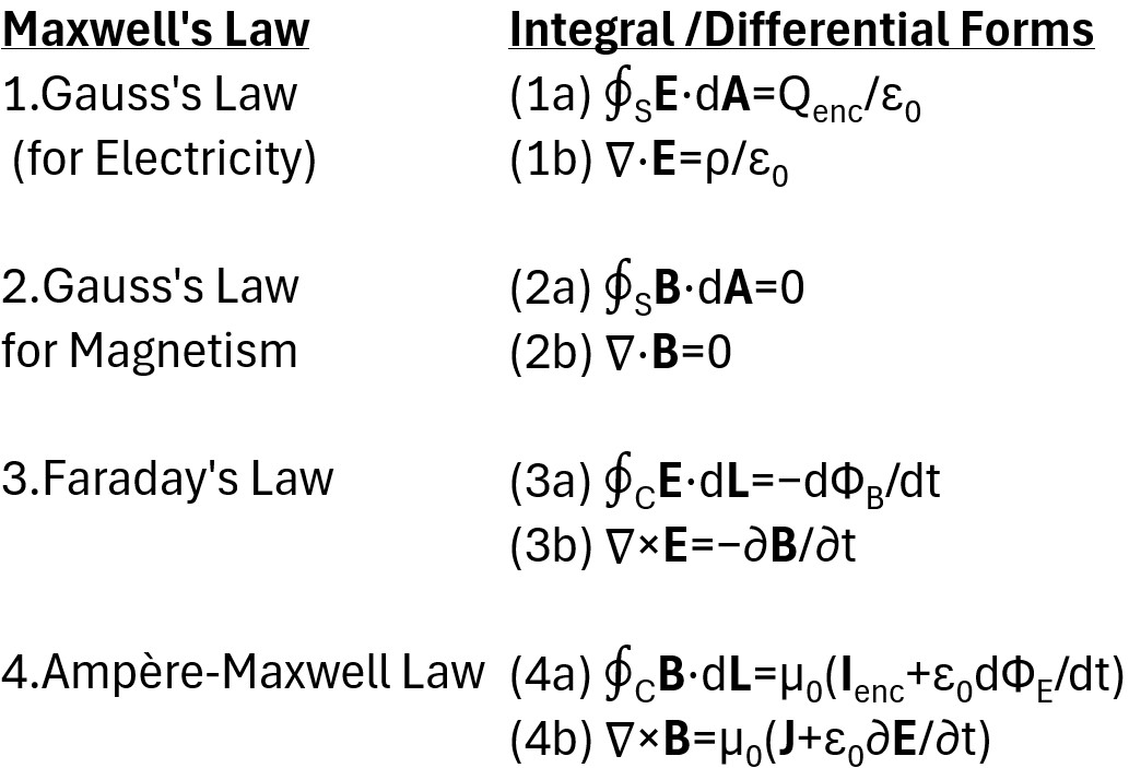 Maxwell’s equations are typically first learned in their integral form, describing electromagnetism over volumes and loops.