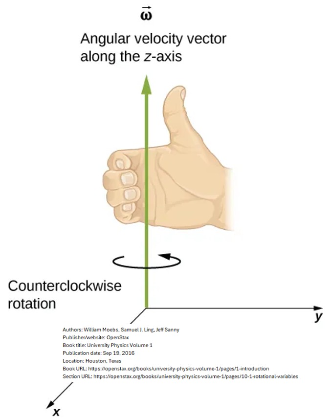 - The right-hand rule: Wrap right hand fingers in direction of motion and thumb will point in direction of vector ω