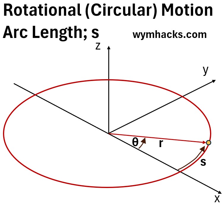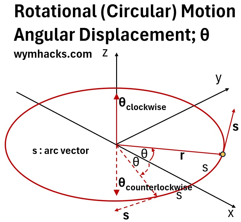 (1) θ = s/r or s = r θ ; Angular position in radians (rad)