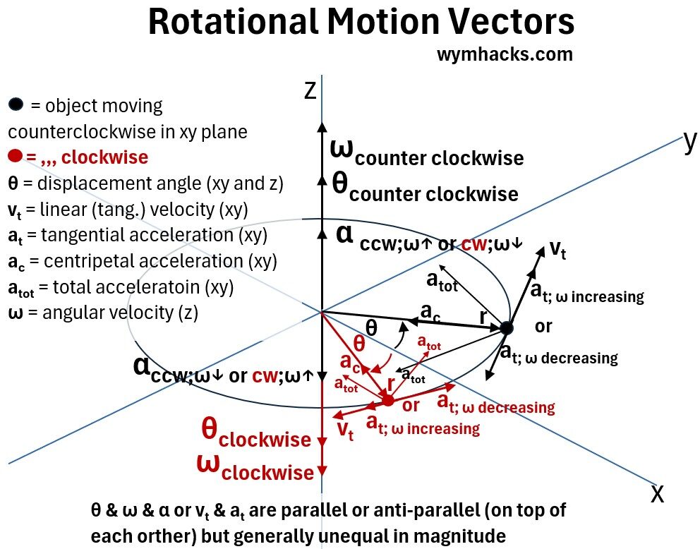- Clockwise / Speeding Up /ω vector on z pointing down/ α vector on z pointing down