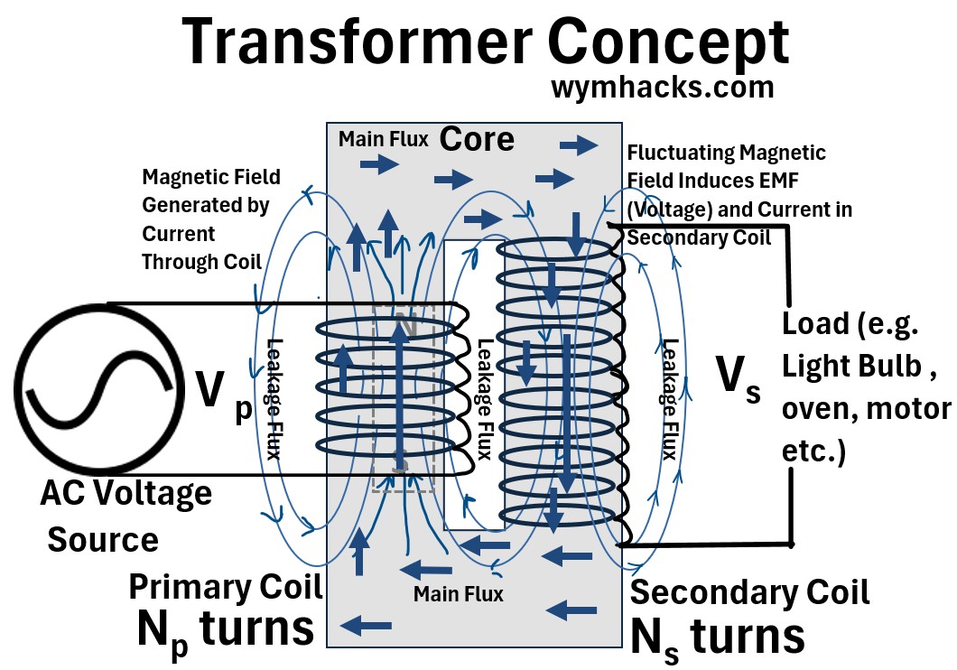 By operating on the principles of electromagnetic induction, it allows for the efficient transfer of energy between circuits while maintaining a constant frequency (60 Hz in the United States) .