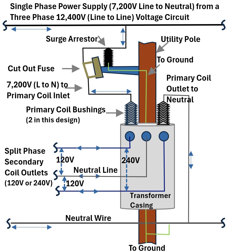 The transformer that typically provides single phase to your home has the typical  cylindrical or “can” shape you see hanging from utility poles in your neighborhood.