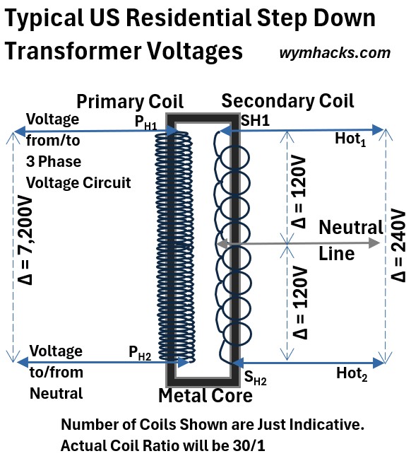 or  a typical single phase step down transformer that feeds you house (see the picture below)