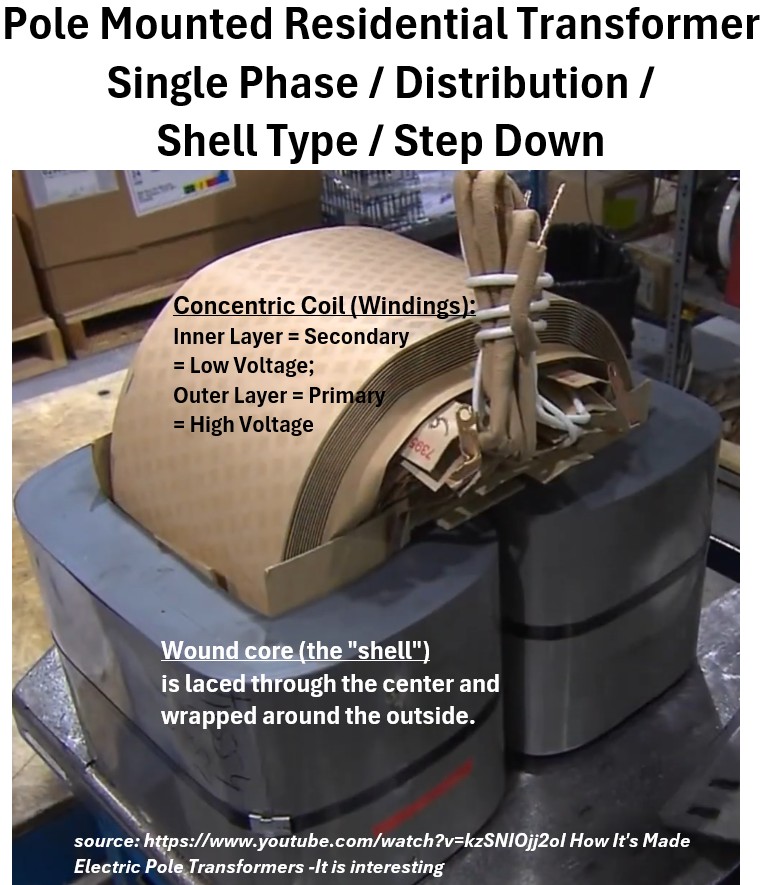 Picture: Typical Design of a Single Phase (Can shaped) Step Down Transformer that Feeds your house