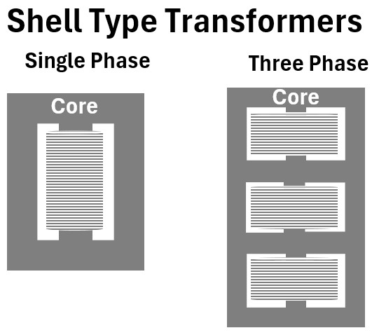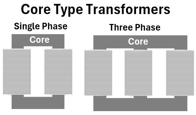 In a power plant three phase step up transformer, like the one in the drawing below, there will be three sets of primary and secondary windings that are wrapped around a central core.