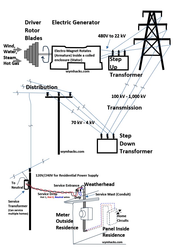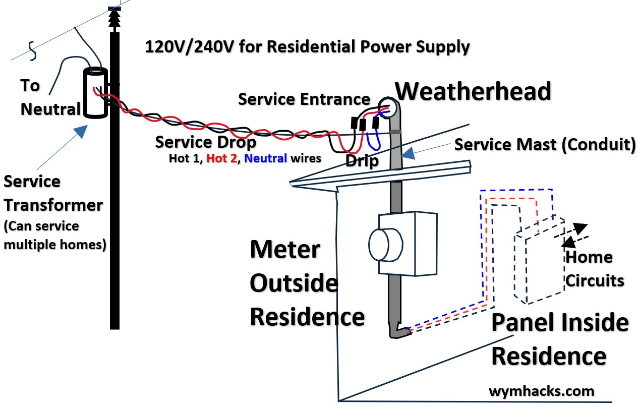 • The Delivery: This is the “Secondary” service that finally enters your electrical panel.