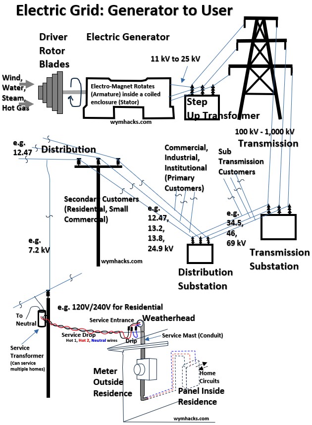 - The Customers: Some “Sub-transmission” customers, like large hospitals or universities, take power at this level.