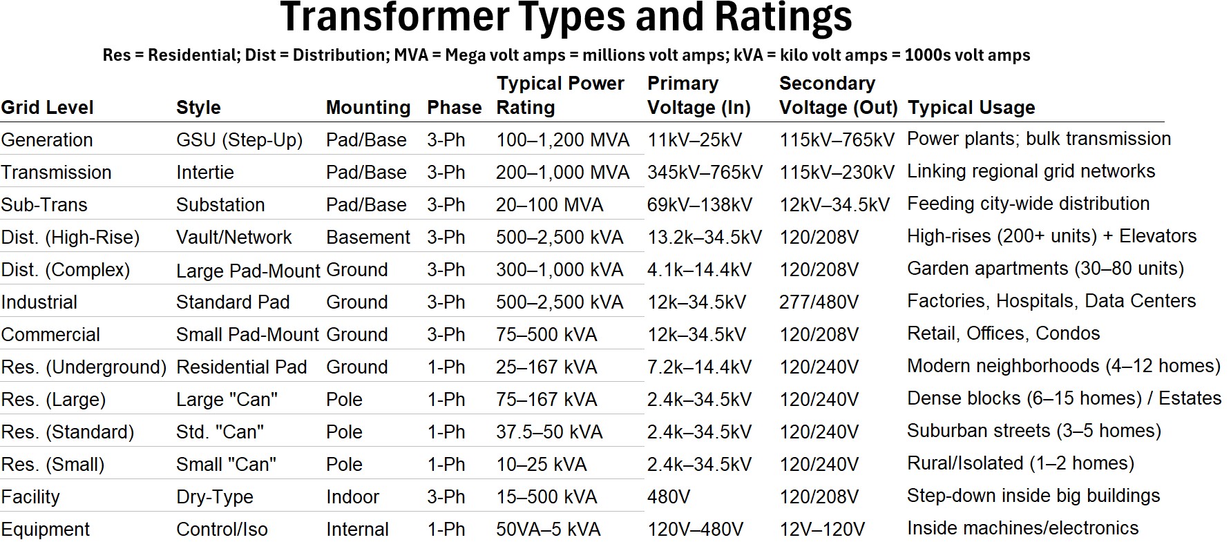 - Typical Voltage: 500kV → 69kV