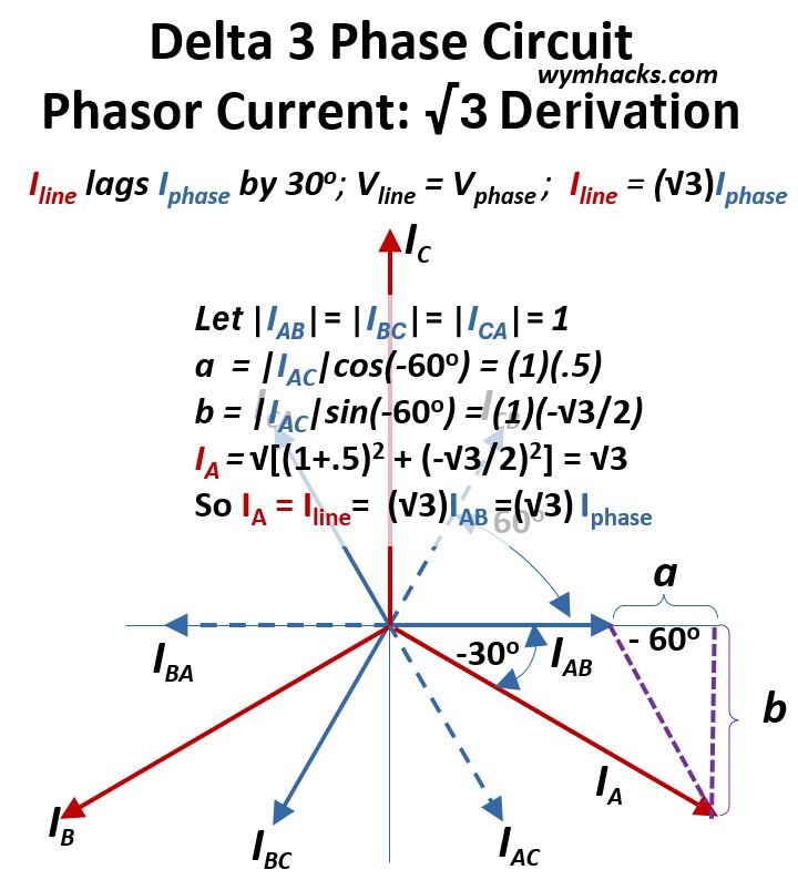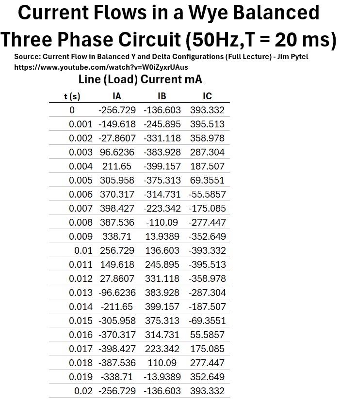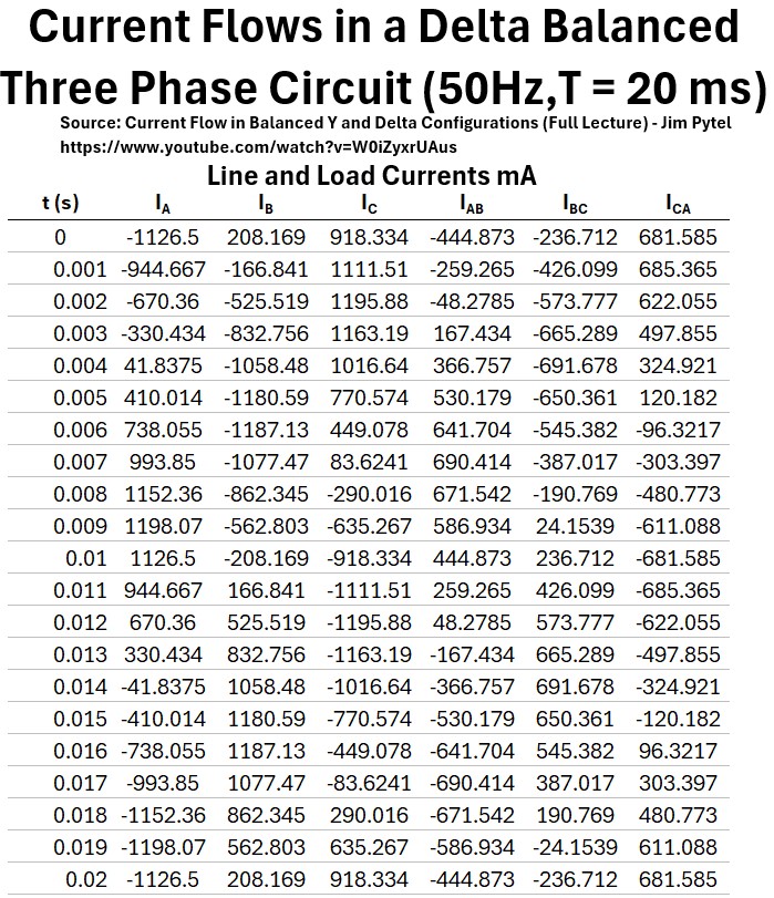 Table: Current Flows in a Delta Balanced Three Phase Circuit