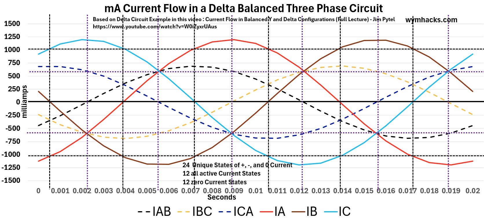 Graph: Current Flow: Delta Balanced Three Phase Circuit