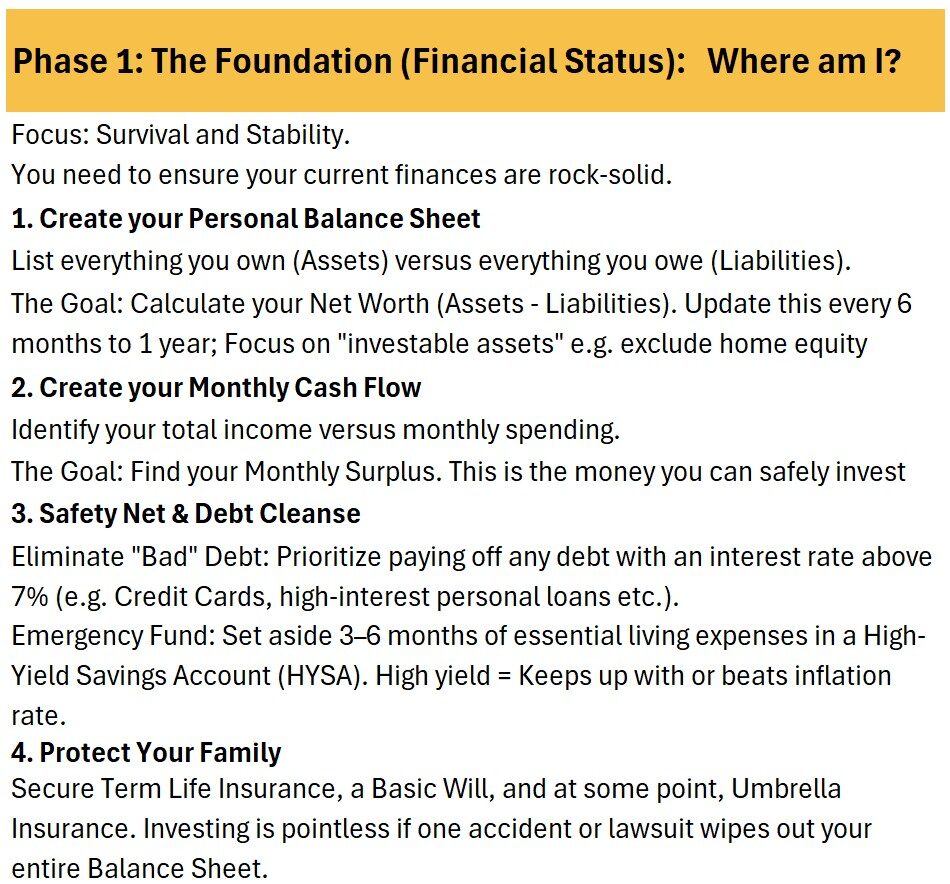 Goal: Survival and Stability. Ensure your current finances are rock-solid before moving forward.